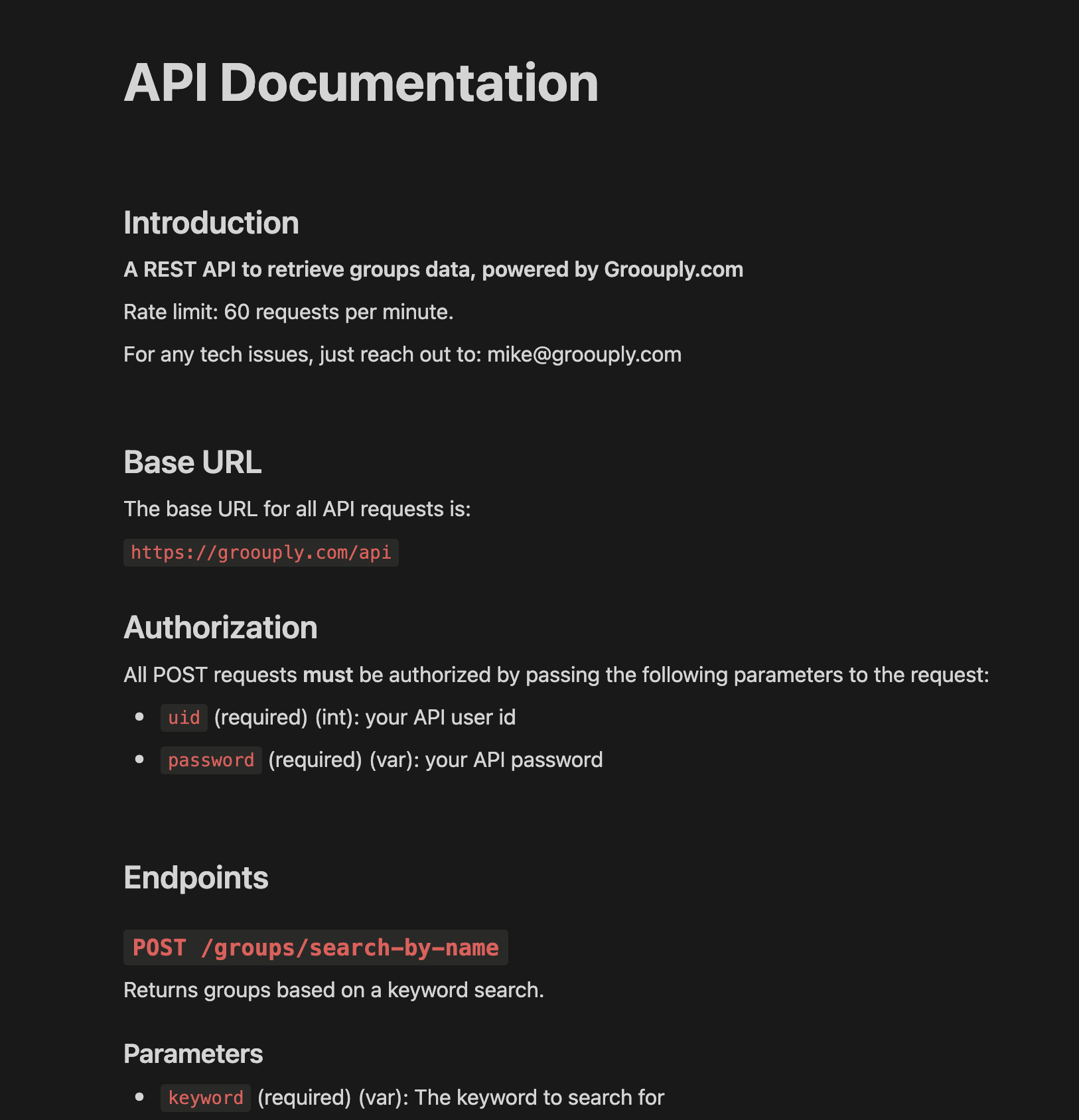 Besides searching groups, our most technical clients love to use our API to access their account information, groups, and mentions programmatically.